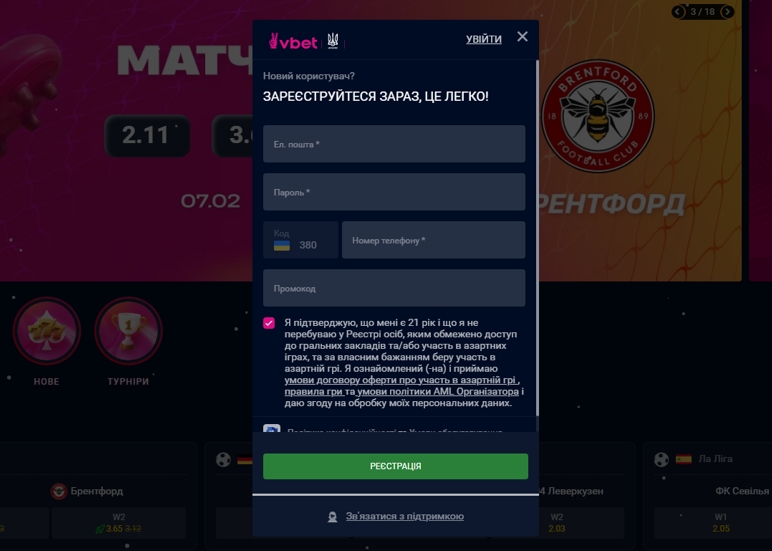 Реєстрація на Vbet: як розпочати гру в БК на прикладі відомого букмекера