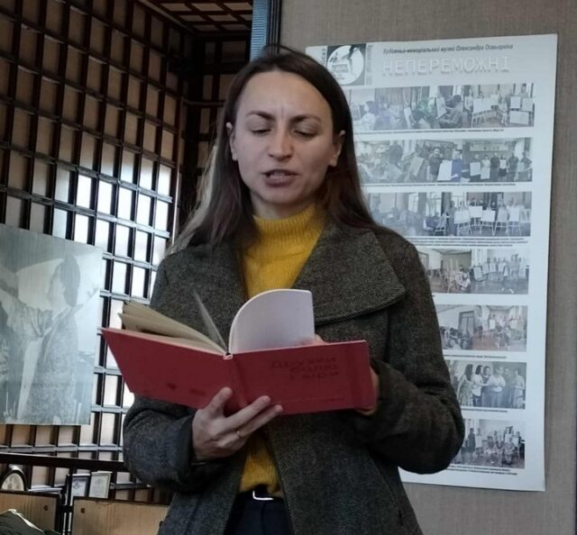 Днями в рамках тижня української мови в художньо-меморіальному музеї Осмьоркіна відбулася творча зустріч з художницею та поетесою Ольгою Краснопольською. Минулого року саме тут була презентована її перша книга «Друзки болю і віри».