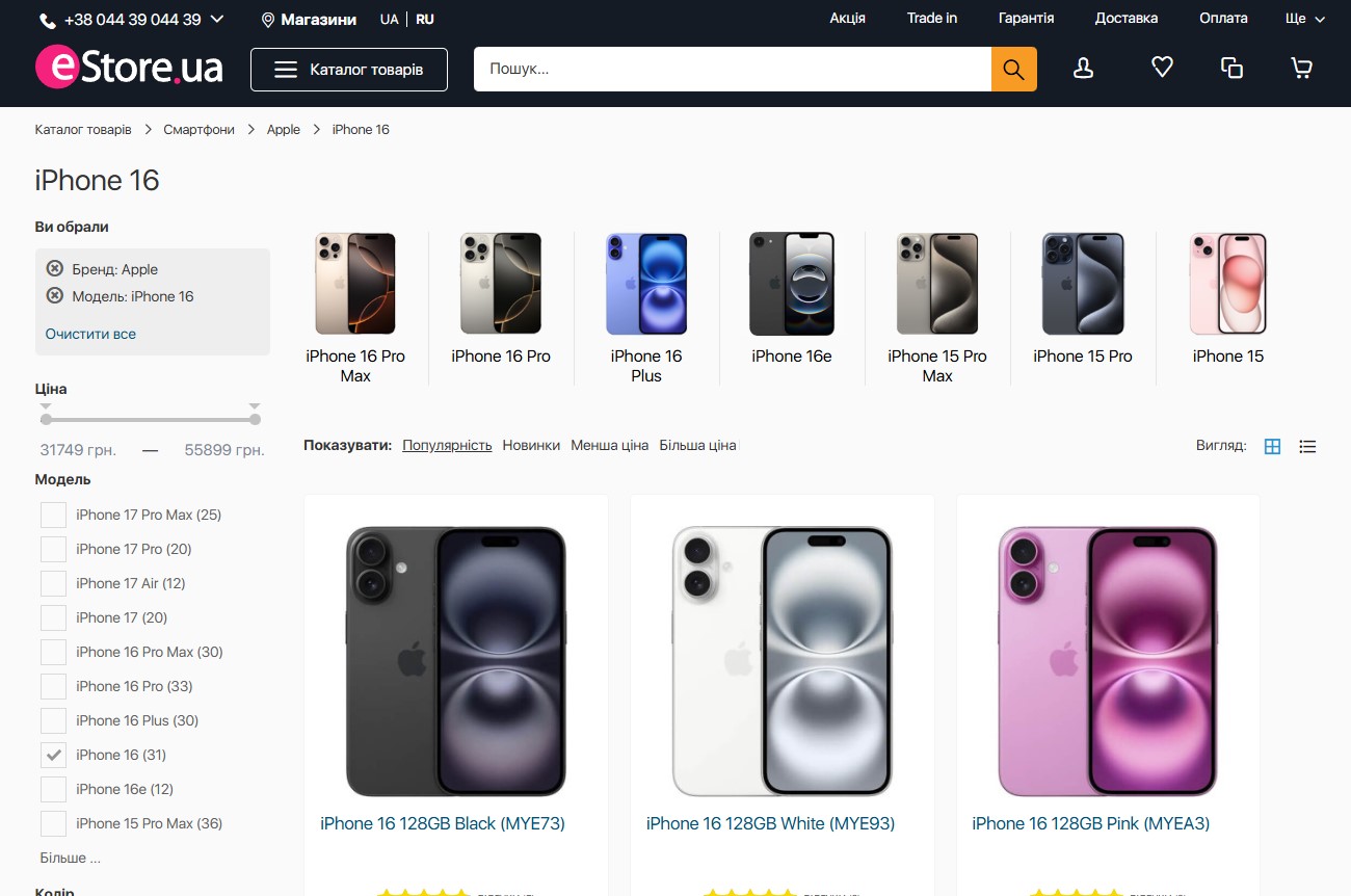 Тим, хто розглядає покупку, можна переглянути актуальні пропозиції тут: https://estore.ua/ua/smartfony/iphone-16/ — один із магазинів, який спеціалізується на техніці Apple та пропонує офіційні моделі з гарантією.