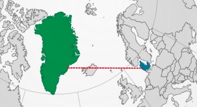 Це зовсім не перебільшення! На території Гренландії легко можуть розміститися десять (!) найбільших європейських держав, або три України з Кримом і Донбасом, або чотири Франції. Якщо розміри Гренландії виявилися для вас відкриттям, не дивуйтеся і не лайте свою вчительку географії, вся справа у візуальному спотворенні розмірів великих об’єктів на картах. Воно, до речі, відоме ще з XVI cторіччя як проекція Меркатора.