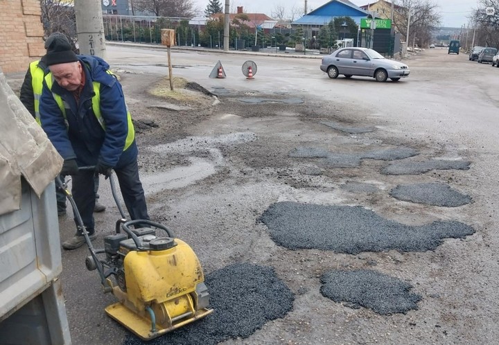 В перекладі на людську мову це означає: поки що комунальники звичайними лопатами засипають ями на дорогах, а коли потеплішає – займуться вибоїнами професійно.