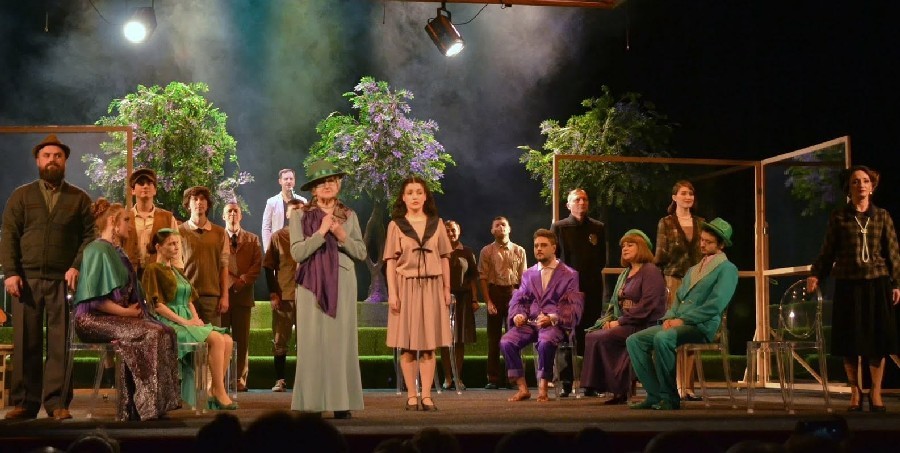 І тут дуже цікавою ремаркою «Мертві і живі проходять на свої місця, мертві запалюють свічки живим, стають у півколо» Вайлдер нагадує нам, що цей метафізичний ланцюжок з’єднує їх, оскільки символізує цілісний природний процес переходу одного виду енергії в інший. А ще, оскільки це п’єса-притча, щоб у містечку не відбулося відчуження і подальшого занепаду, треба не забувати про духовне життя. Воно трохи відкривається у тому, як проходять репетиції церковного хору і як жінки захопливо це обговорюють. Але обривається зі смертю органіста Стімсона (цю роль яскраво виконав Юрій Оноприйко). Очевидно, він не зміг вийти зі своєї «шафки». Але автор закликає нас зробити це, «поки не порвався срібний ланцюжок і не розкололася золота чаша, поки не розбився глек у джерела і не обрушилося колесо над колодязем» (Еклезіаст).